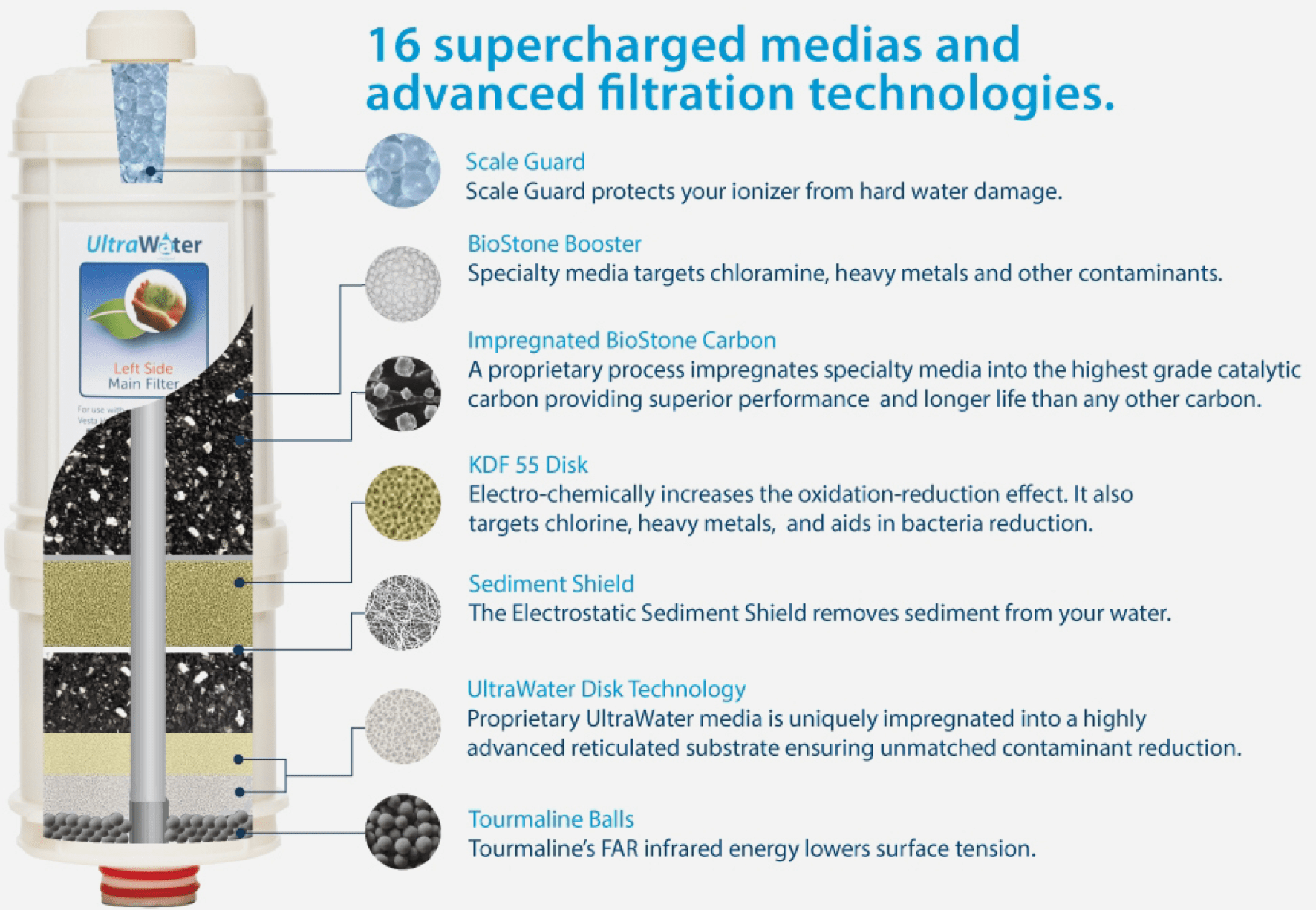 UltraWater™. It is the only water ionizer filter we know of that is independently and rigorously tested against 249 contaminants in EPA certified labs—reducing virtually all of them to 99.9%, including the toughest things like chromium VI, arsenic, heavy metals, pharmaceuticals and more. While leaving in what’s good!